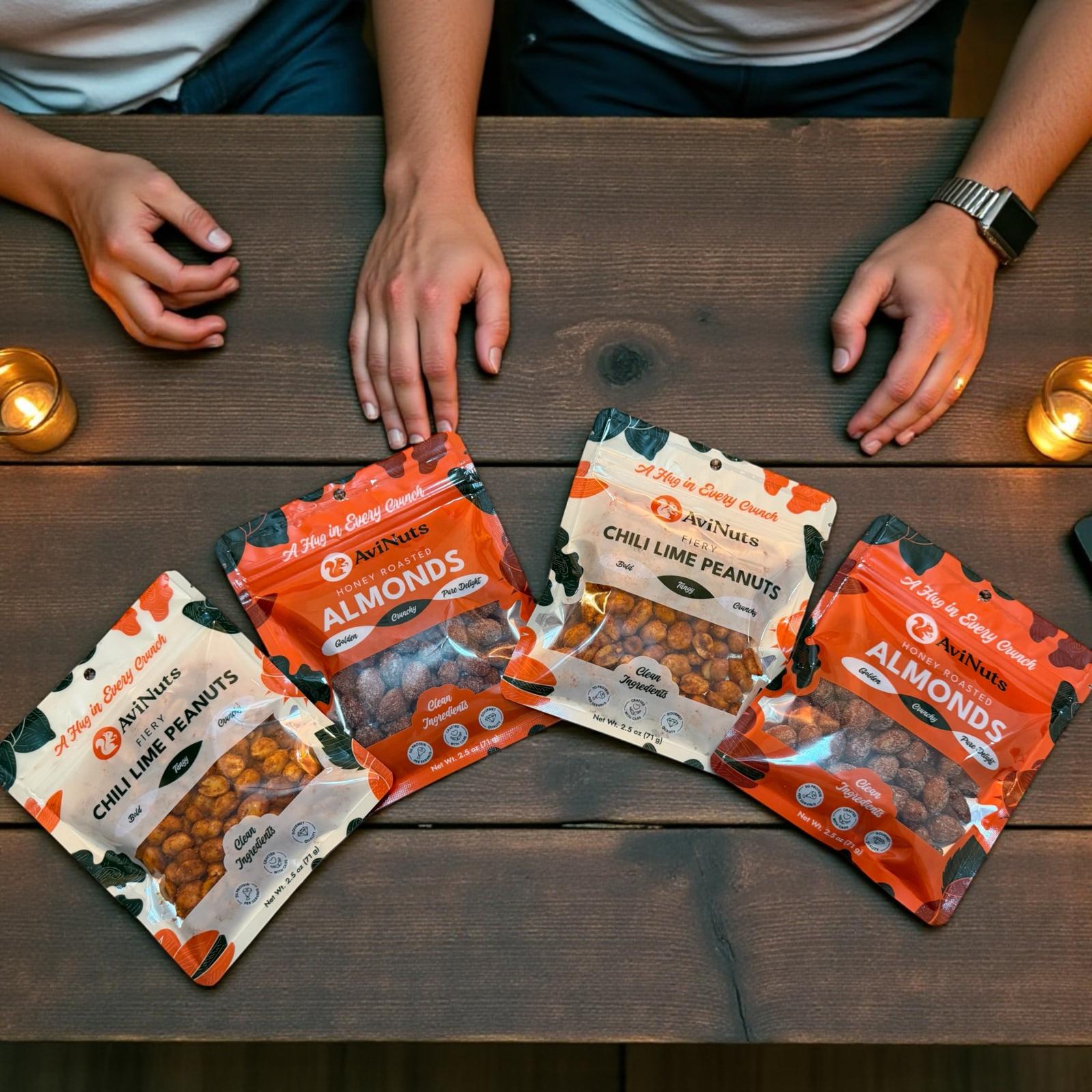AviNuts is a women-led small business based in California. Every box is hand-packed with care, joy, and a little dancing in the kitchen. We can’t accept opened returns (food safety!), but we will always do our best to make things right. If something feels off, or you’re unsure where your issue fits — just reach out. We’ve got your back (and your snacks).
